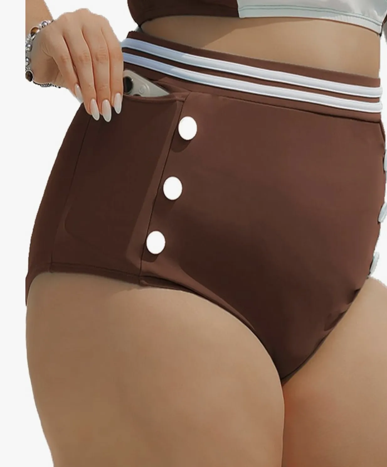 Women's Plus Size High Waisted Bikini Bottoms Tummy Control Swim Bottom with Side Pockets Full Coverage Swimsuit Brown - $18 New With Tags - From jello