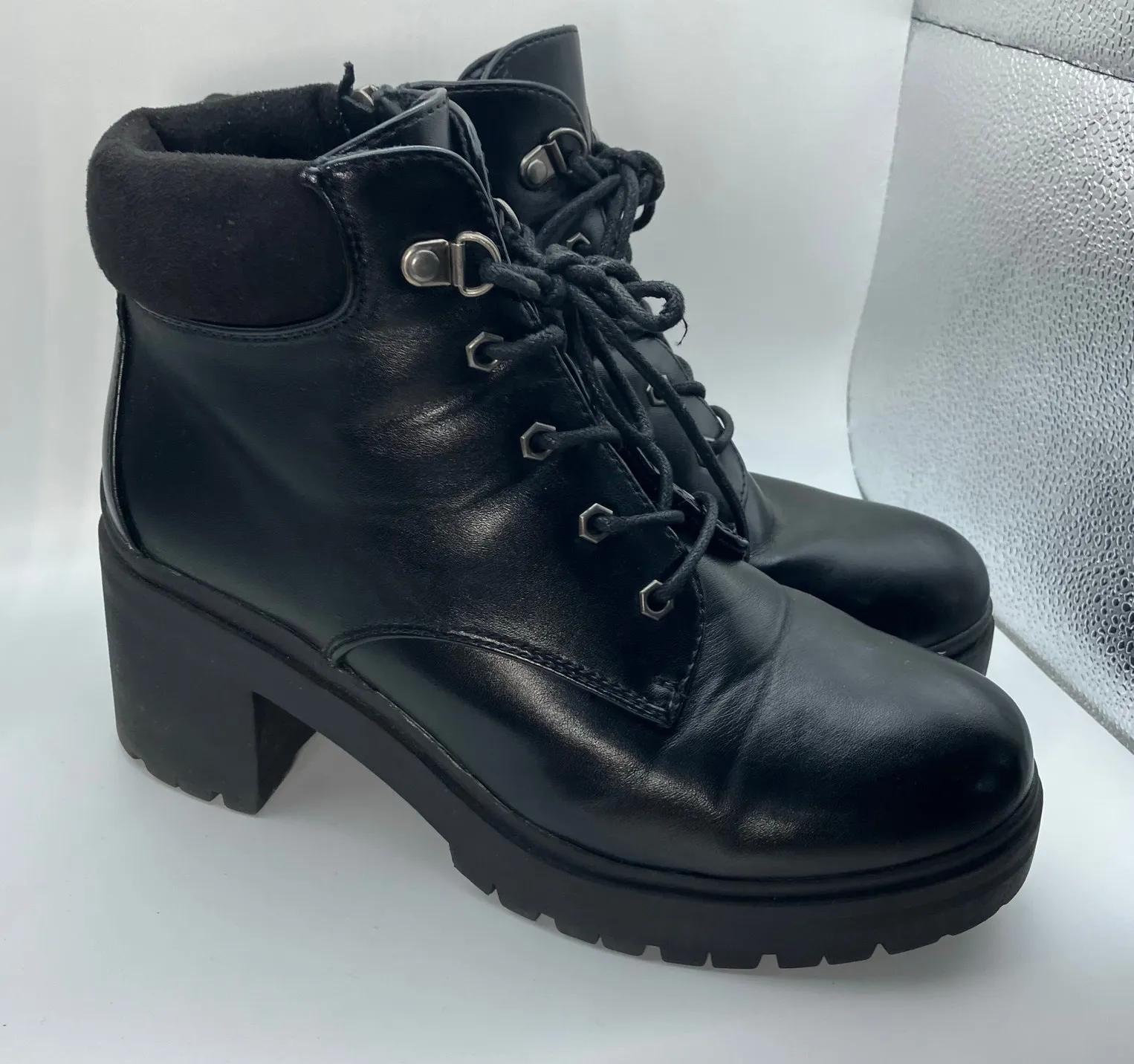 Cushionaire Remy Black Lace-Up Lug Sole Chunky Heel‎ Boots Size 9.5M combat punk - $35 - From Tracie