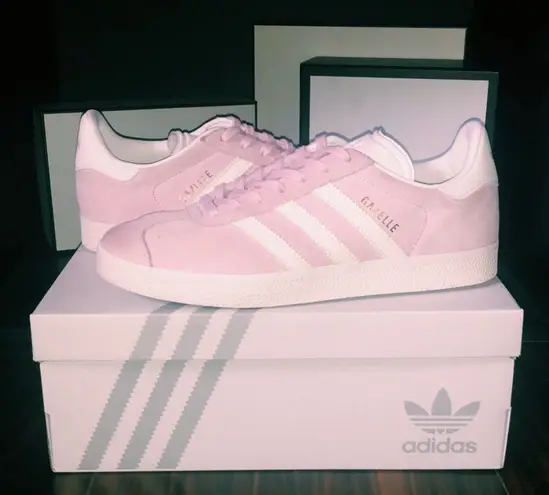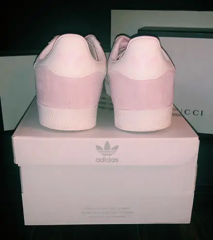 100% perfect condition. One of my fav pairs of shoes. Baby pink gazelles customized on MiAdidas. Com... Show more