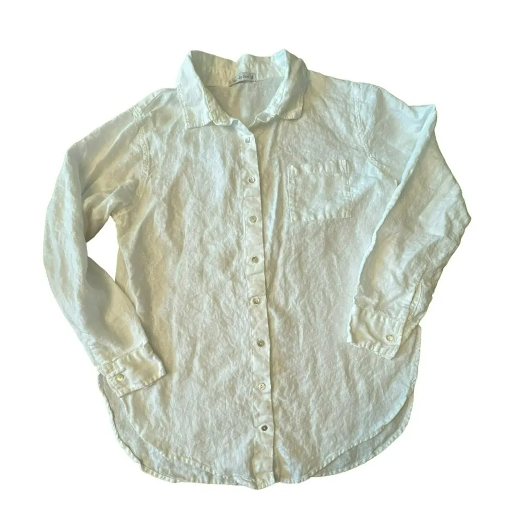 Cut Loose Long Sleeve Linen Top Size XL Collared Oversized Left chest open pocket Rounded si... Show more