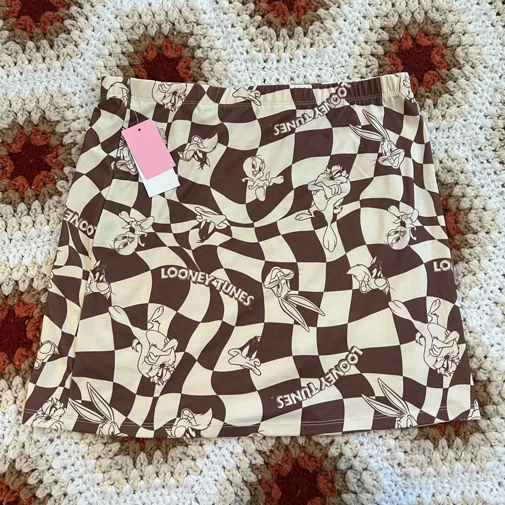Fun and playful style with this Cute Brown and Cream Looney Tunes Mini Skirt. New with Tags. This skirt features beloved Looney Tunes characters and effortlessly blends nostalgia with a touch of whimsy. Elevate your look with this charming and unique piece, perfect for showcasing your love for classic cartoons and adding a playful twist to your outfit. Approximate (flat) measurements: Length: 15.5in Waist: 14.5in (stretchable 3) 95% Polyester 5% Spandex *Accepting offers!* *Let me know if you have any questions!* #LooneyTunes #MiniSkirt #CartoonCharacters #NostalgicFashion #PlayfulStyle #FashionStatement