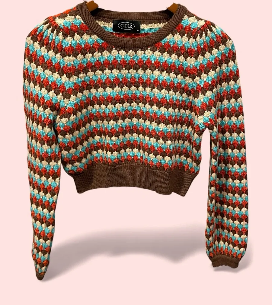 Cute Cider crochet crop sweater Charlie Brown vintage vibes boho festival Blue Size M - $27 - From Ruth