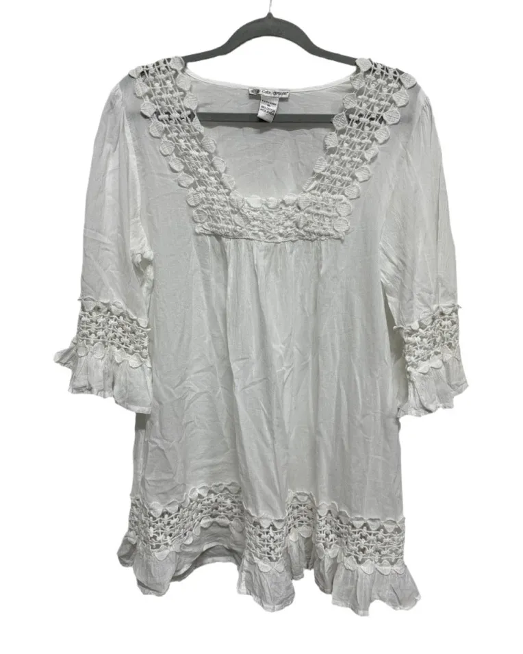 Cute Options White Cottage Core Peasant Festival Cotton Tunic Top 100% Cotton XL - $25 - From Hannah
