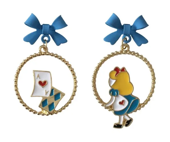 Cute running princess fairy tale Alice‎ and poker asymmetric enamel earrings new Blue - $18 New With Tags - From Shelley