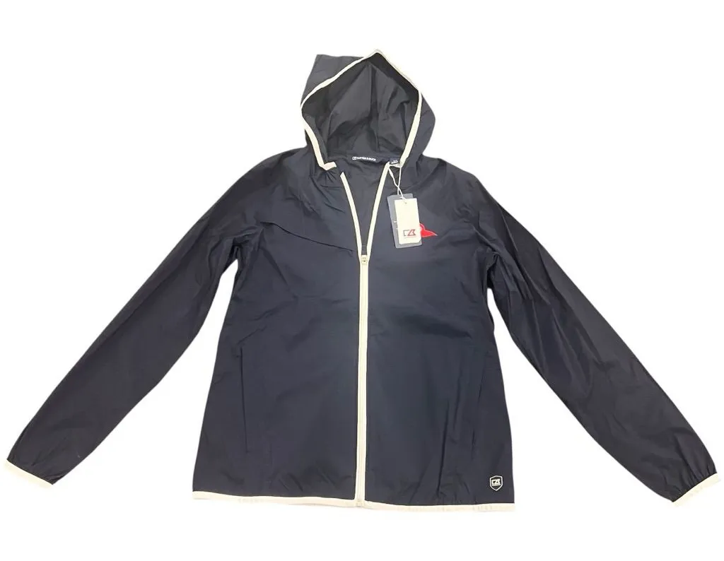 Brand New with Tags - Cutter & Buck Ladies Breaker Hooded Jacket Upgrade your activewear with this versatile and stylish Cutter & Buck Breaker jacket. Perfect for golf, travel, or casual everyday wear, this jacket blends performance technology with a sleek, modern look. Key Features: Performance Fabric: 91% Nylon / 9% Elastane blend provides excellent stretch and durability. Weather Protection: Features CB WeatherTec technology for wind and water resistance. Sun Safety: Rated UPF 40+ for excellent UV protection. Design: Full-zip front with a hood and contrast white trim for a sporty "emoji-worthy" look. Care: Machine washable (Cold/Delicate cycle). NWT Measurements in photo