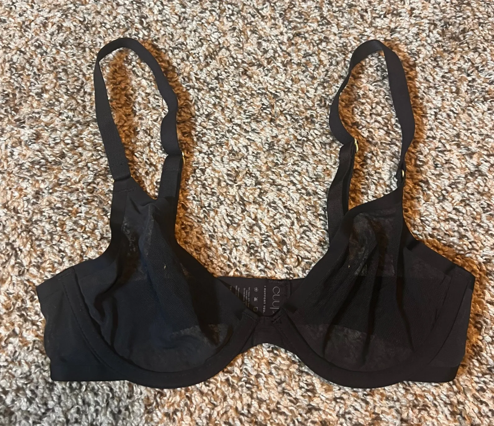 A sheer, unlined plunge bra designed for everyday comfort and support. This bra features a minimalist design with a low neckline, perfect for wearing under various tops and dresses. The unlined cups provide a natural shape and a lightweight feel, while the adjustable straps ensure a customized fit. The bra is finished with a hook-and-eye closure for easy wear. Ideal for daily wear, special occasions, or as a comfortable option for lounging. Type: Bra Style: Plunge Bra Color: Black Department: Women Band Size: 30 Cup Size: C Features: Adjustable Straps, Unlined, Sheer, Lightweight, Plunge Underwire Type: Underwired Pattern: Solid Fabric Type: Mesh Accents: Strap, Lace Strap Type: Bra Strap Material: Nylon Blend, Spandex Keywords: CUUP bra, plunge bra, sheer bra, unlined bra, black bra, 30C bra, lingerie, women's bra, everyday bra, comfort bra, adjustable straps, minimalist bra, lightweight bra, the plunge