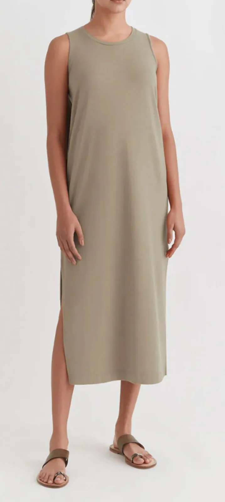 Refresh your day-to-night wardrobe with this elevated Cuyana t-shirt dress, woven from a soft and sustainable Pima cotton blend in a serene sage green. The silhouette features a slim fit through the bust that flows into a striking draped back and airy side slits for effortless movement. Ideal for summer garden parties, upscale travel, or transition dressing. This ankle-length piece perfectly balances modern comfort with sophisticated fluid design. Product colors may vary slightly due to lighting in photos or monitor settings. 45% Pima Cotton 45% Modal 10% Elastane Pet friendly and smoke free home. I do my best to describe items accurately so please see all photos and details provided. Items may need cleaning ironing or pressing from storage. Tags: luxe minimalism, quiet luxury, coastal grandma, summer midi, sustainable fashion, effortless drape, parisian chic, soft dressing, earthy sage, elevated basic, travel capsule, breezy aesthetic, organic feel, fluid silhouette, chic comfort