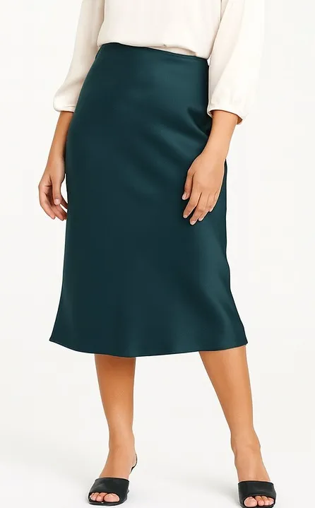 The Universal Standard Diane Satin Bias Skirt in Deep Sea features a buttery soft drape with a flatt... Show more