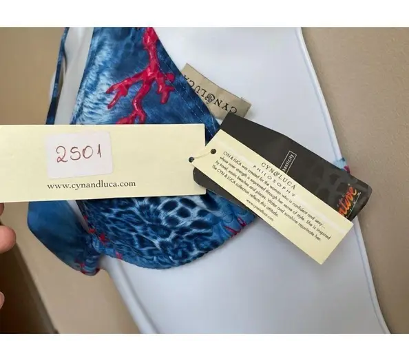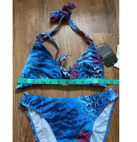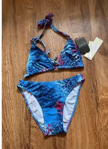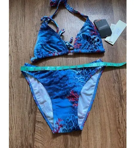 Cyn & Luca two piece blue bikini - medium NWT womens NWT Cyn & Luca --medium beautiful ocean inspired two piece bathing suit with coral reef accents and a halter tie around the neck and tie closure around the back. This is a stunning and unique bathing suit in person!