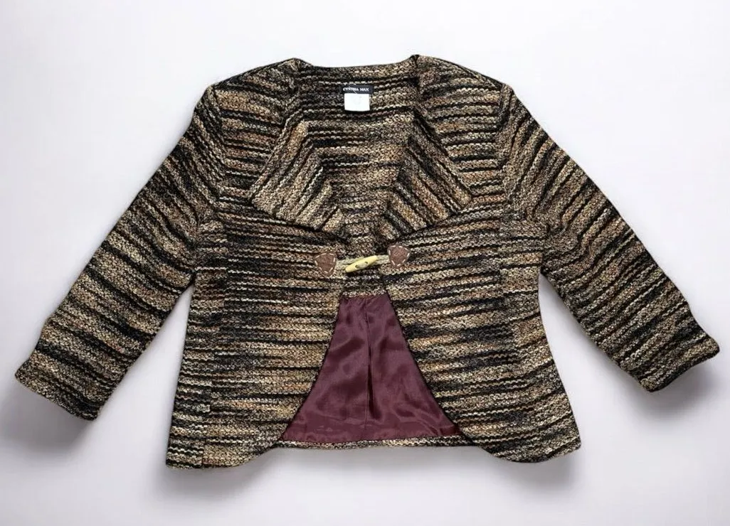 Cynthia Max Vintage Blazer Suit Jacket Cardigan Wooden toggle closure Lined Slit detail on sleeve;... Show more