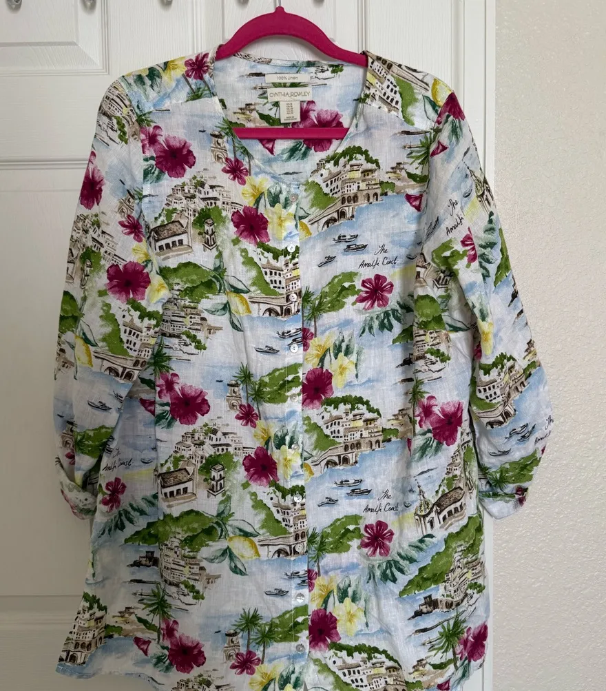 Cynthia Rowley 100% Linen The Almafi Coast Italy Summer Vacation Shirt Pink Size 1X - $30 - From Abeer