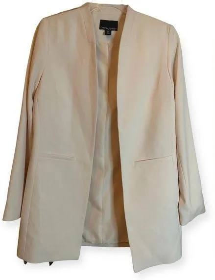Collarless and Long line 2 Front Faux pockets Cream/Peachy color 97% Polyester/3% Spandex Dry Clean... Show more