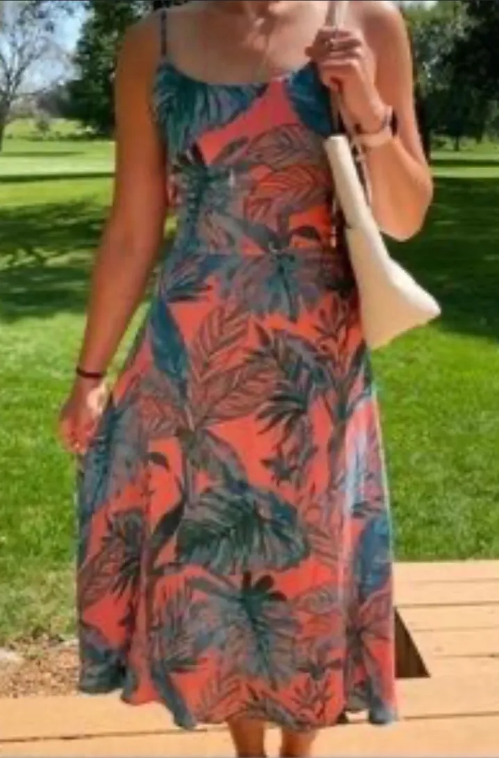 Transport yourself to paradise with this breathtaking Cynthia Rowley maxi dress. The vibrant coral b... Show more