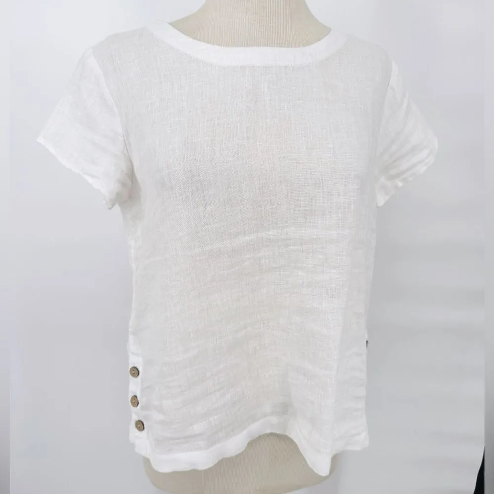 Cynthia Rowley Linen Side Buttons Boxy Short Sleeve Lagenlook White Top - Size: Small - Condition:... Show more