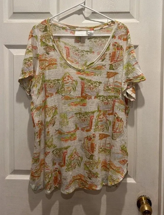 CYNTHIA ROWLEY Size 1X 100% Linen Island Print Top Shirt Beachy Boho Great pre owned condition. Mino... Show more