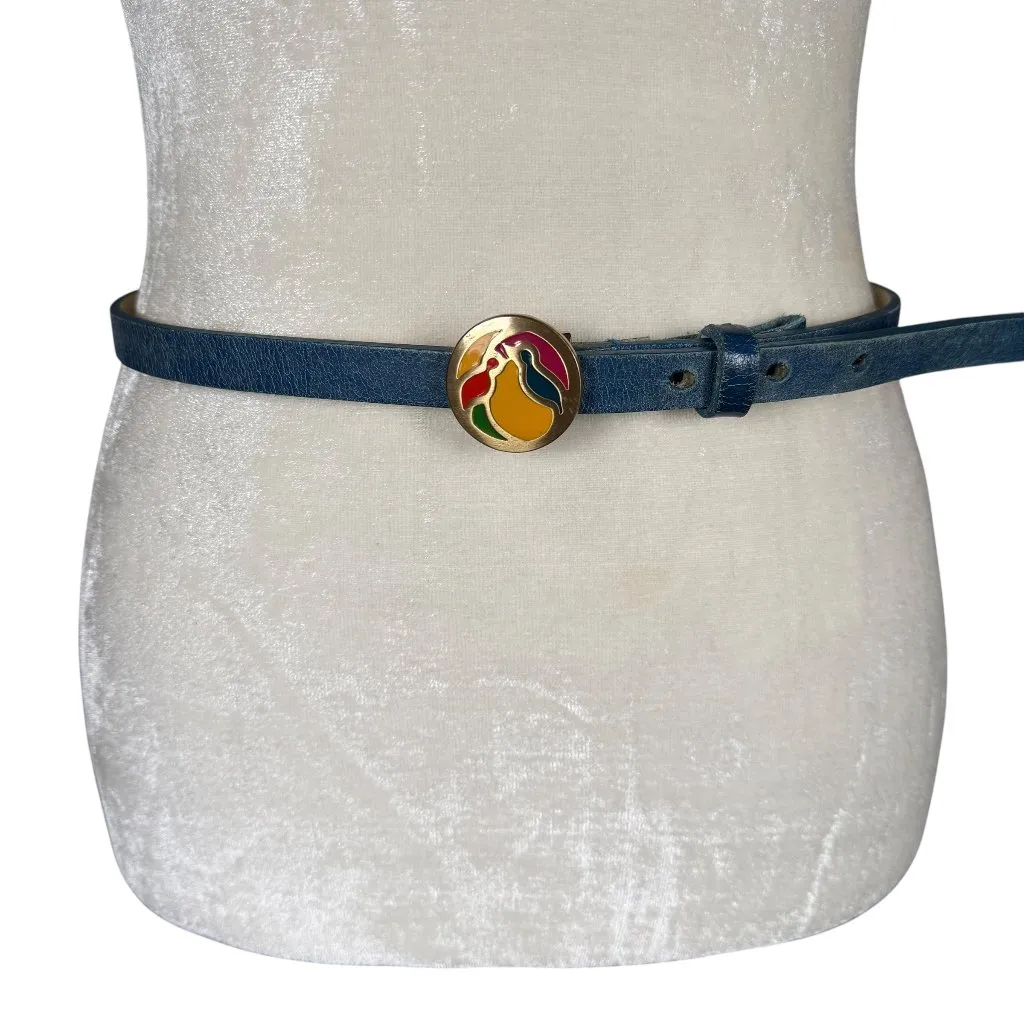 Women's Cynthia Rowley genuine leather blue adjustable skinny belt, size large. This has a round go... Show more