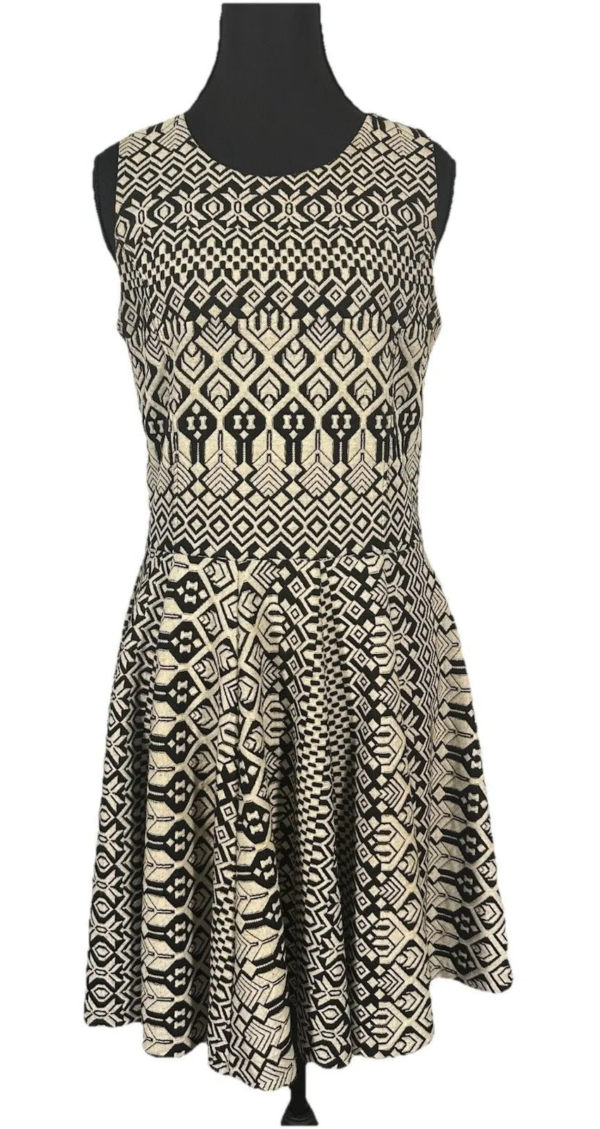 Cynthia Rowley Size S Black/ White Tribal Print A Line Midi Skater Dress Easy to dress up or down fo... Show more