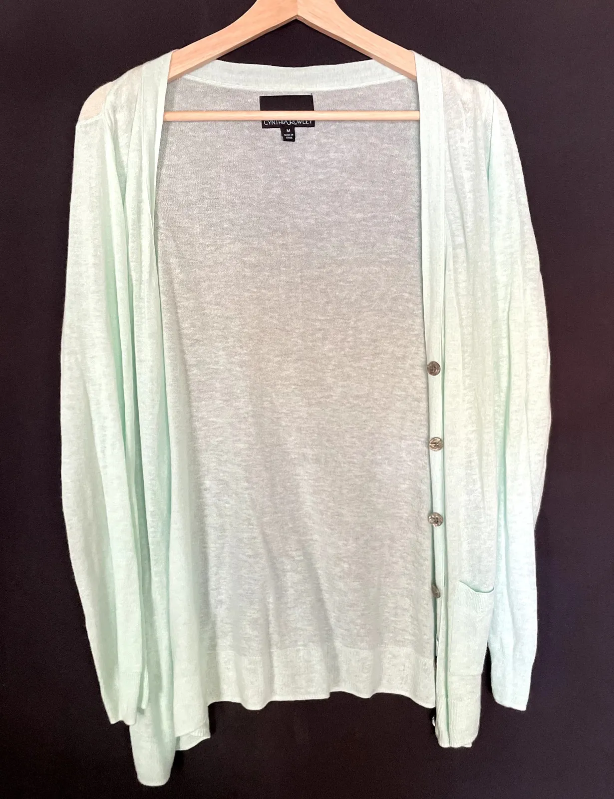 Add a touch of elegance to your wardrobe with this beautiful Cynthia Rowley cardigan. The soft mint... Show more
