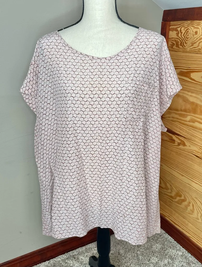 Great condition Size 3X 100% silk Pit to pit 29” and length 30” measurements in pics Thin, lightwei... Show more