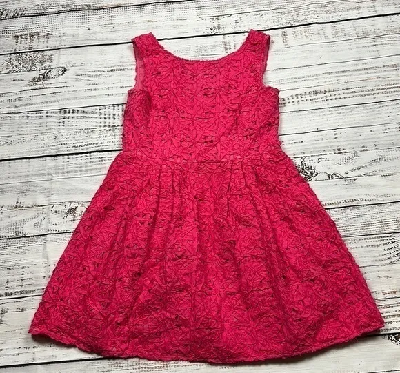 Cynthia Steffe Hannah fit & flare dress Pink Ribbon texture Zip in back Sleeveless Size 12 Ap... Show more