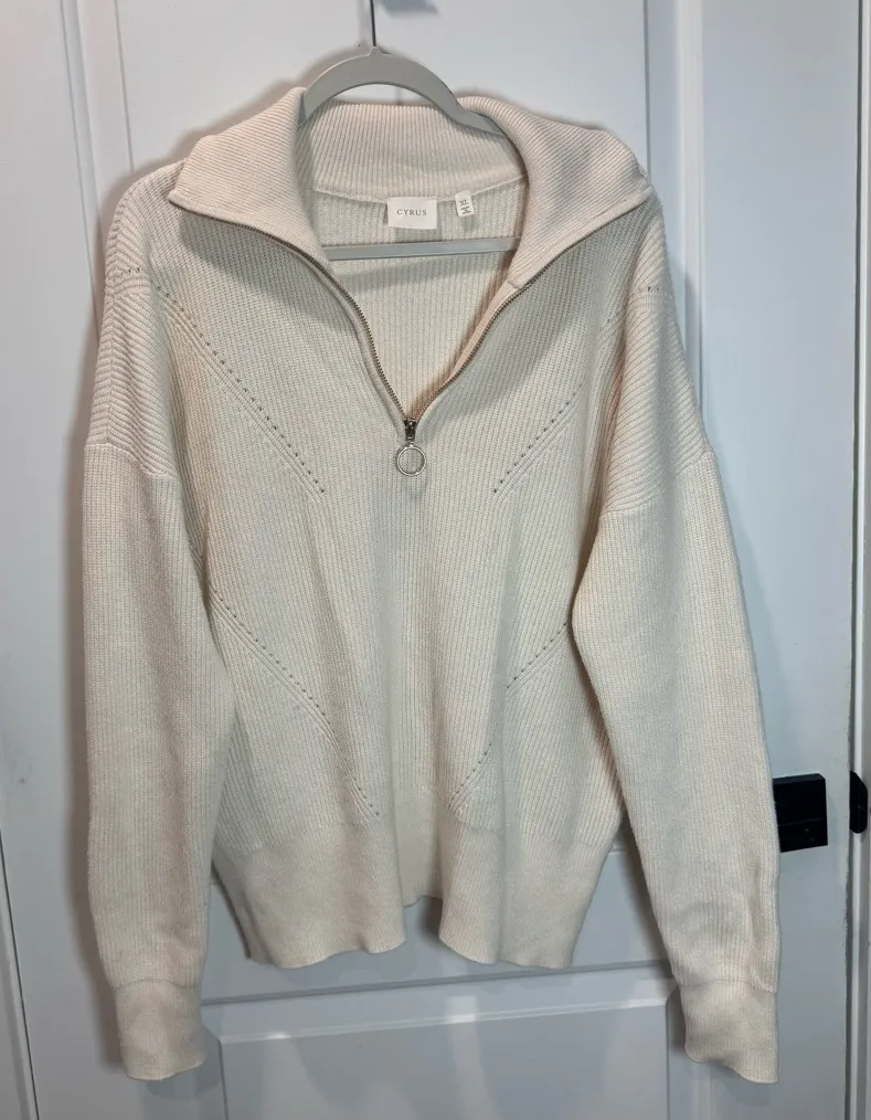 Cyrus women's long-sleeved ribbed zip-neck sweater, cream color, size XL - $30 - From Riccy