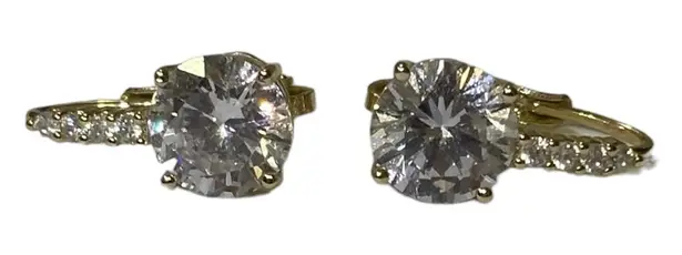 Pre-owned No defects, No flaws Elevate your style with these stunning CZ Gold-Tone LeverBack Dangle Earrings. These earrings are perfect for any special occasion, whether it be a wedding, anniversary, or birthday. The round shape and leverback closure make them easy and comfortable to wear. The white cubic zirconia stone adds a touch of elegance and beauty to these earrings. They are handmade with high-quality materials and designed to last. These earrings are a great addition to any jewelry collection and are sure to make a statement. Shipped with USPS ground advantage.