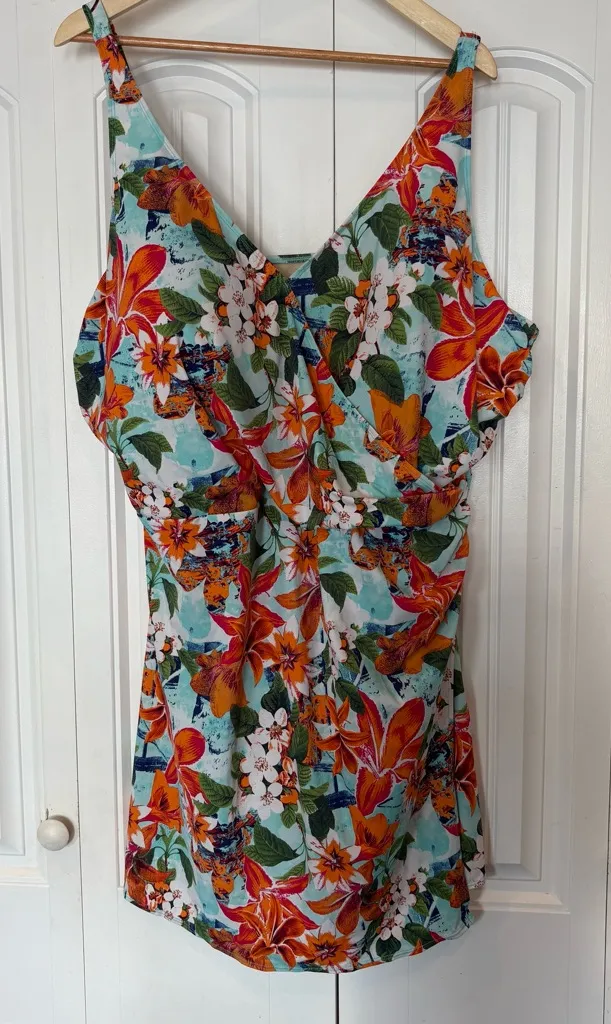 D&Co Blue And Orange Floral Swim‎ Dress Size 30W - $26 - From Cassandra