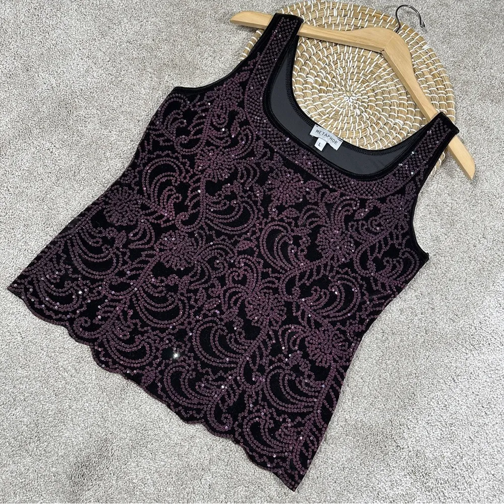 Metaphor Black Purple Sparkly Beaded Sequin Pattern Tank Top Velvet Whimsigoth L Size L - $25 (37% Off Retail) - From Elmee