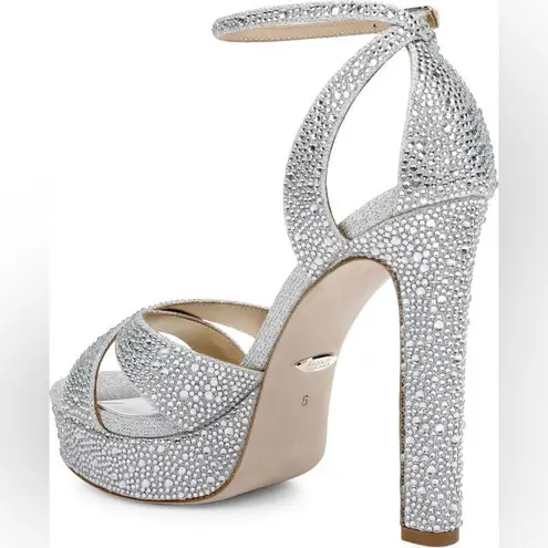 Like new! Size 9.5 A chunky platform and soaring heel lend retro-inspired charm to a jewel-encrusted sandal that will make a glamorous statement at your next soirée. 5" heel; 1 1/4" platform Cushioned footbed Textile upper/synthetic and textile lining/leather sole Imported Item #7405255