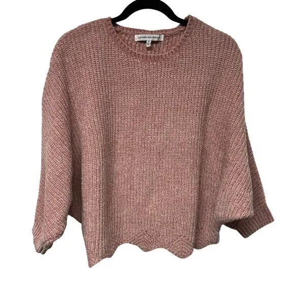 Cupcakes & Cashmere Pink Metallic Scallop Dolman Sleeve Pullover Sweater Small - $29 - From Heather