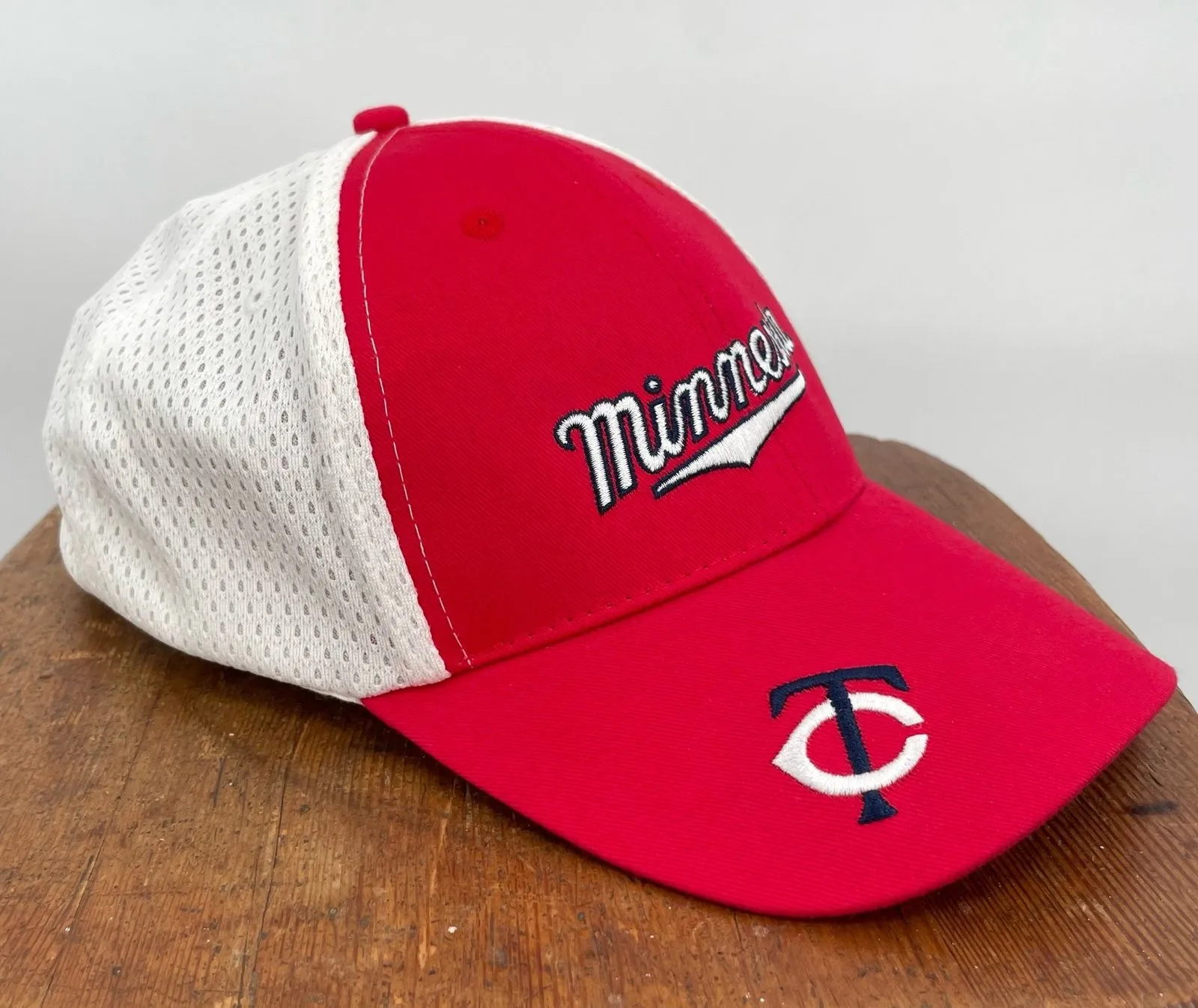 Embroidered Twins logo at side of red bill and Minnesota embroidered script in white across red fron... Show more