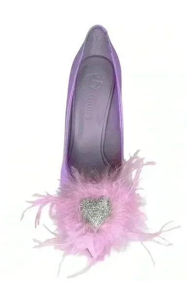Amara Ostrich Pumps Lilac Pointed toe heeled tag satin feather silver heart.Sz39 Purple Size 8.5 - $53 (91% Off Retail) - From ramata