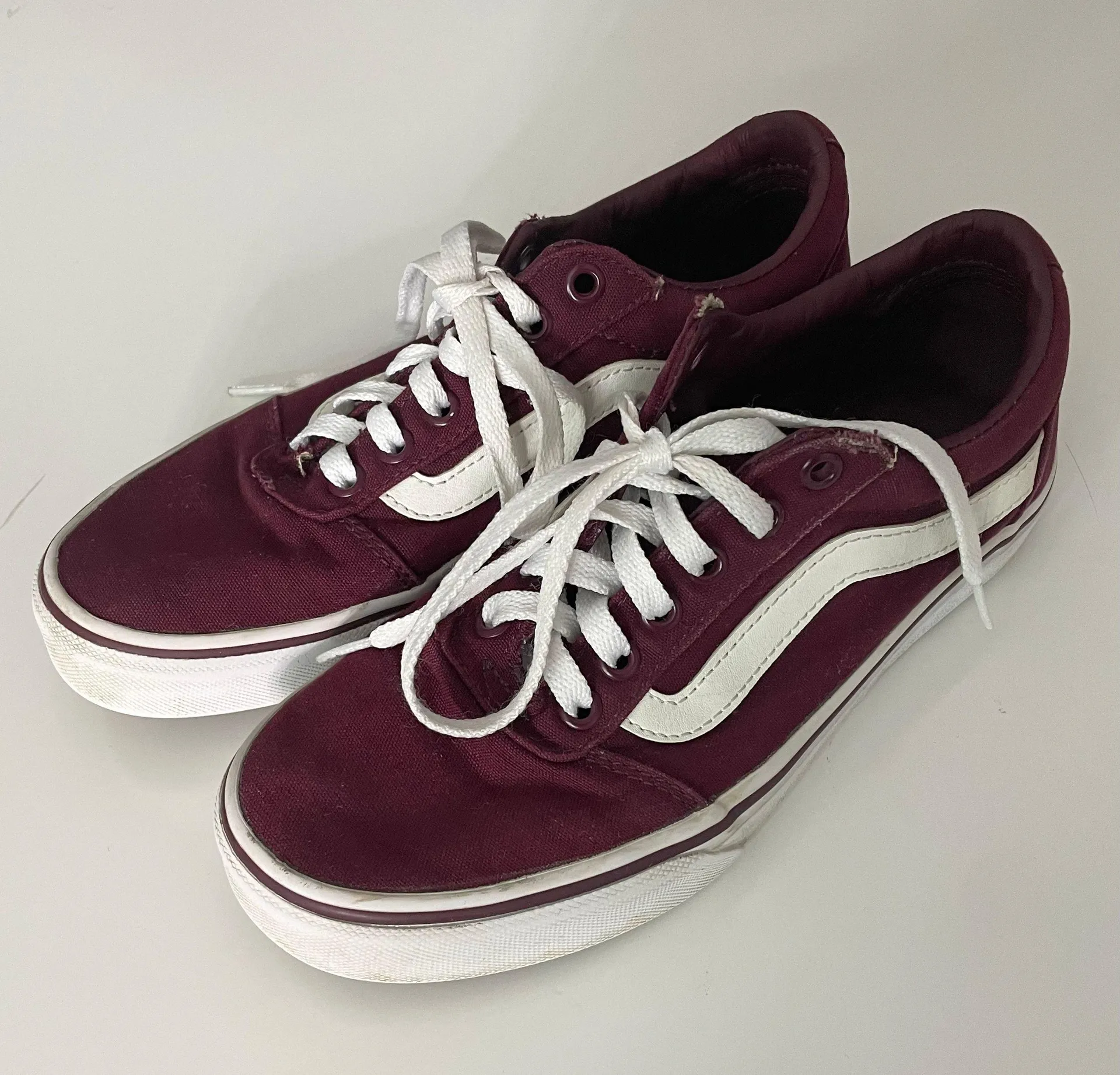 Vans Old Skool women’s burgundy low top lace up sneakers, minor signs of wear, in good preowned cond... Show more