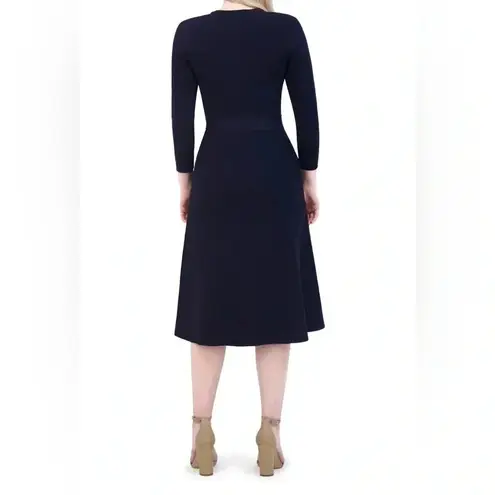 Simple and elegant, this evening-out A-line dress is designed with a defining satiny sash. • Slips on over head • Jewel neck • Three-quarter sleeves • Tie belt • Unlined • 65% rayon, 35% nylon • Machine wash, dry flat Very dark blue, more black. NWT Size XXL