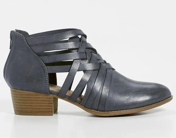 Maurices Diana Braided Strappy Cutout Faux-Leather Distressed Ankle Bootie Gray Size 9 These ankle... Show more