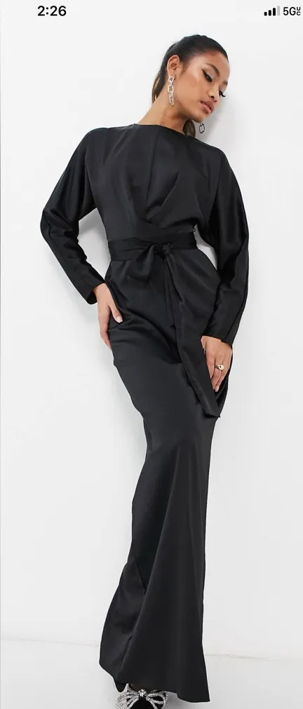 Elegant black maxi dress by ASOS. Features a sleek design with a tie waist. Perfect for formal occas... Show more