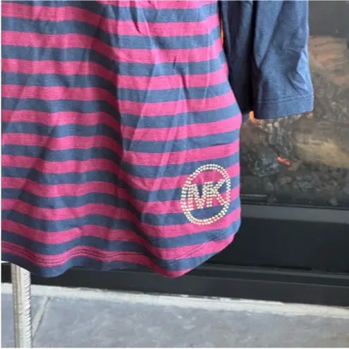 Stylish long sleeve tee with navy and burgundy stripes. Features a round neckline and logo detail. Michael Michael Kors striped top Brand new with tags Excellent condition Women’s size L Red Merlot and blue Navy 1