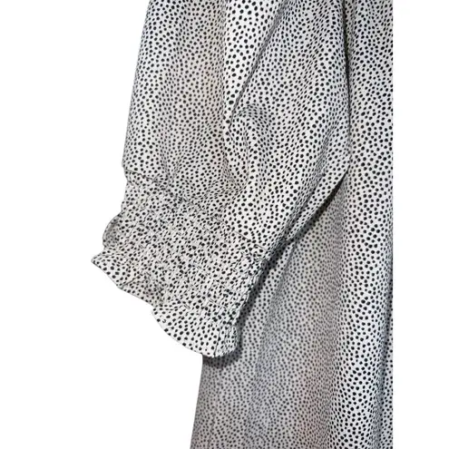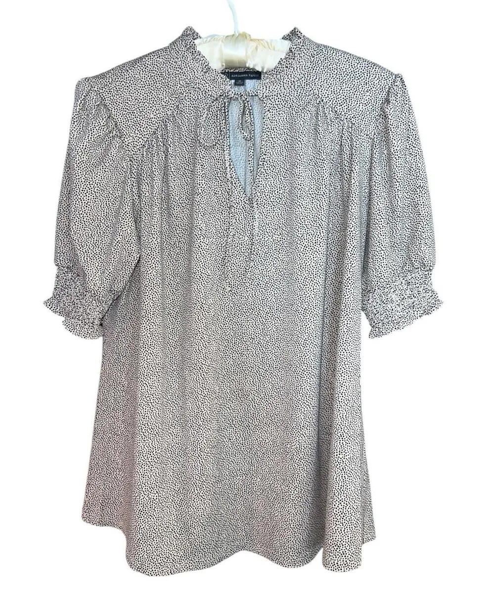 Chic and feminine Adrianna Papell black and white polka dot blouse featuring soft puff sleeves with... Show more