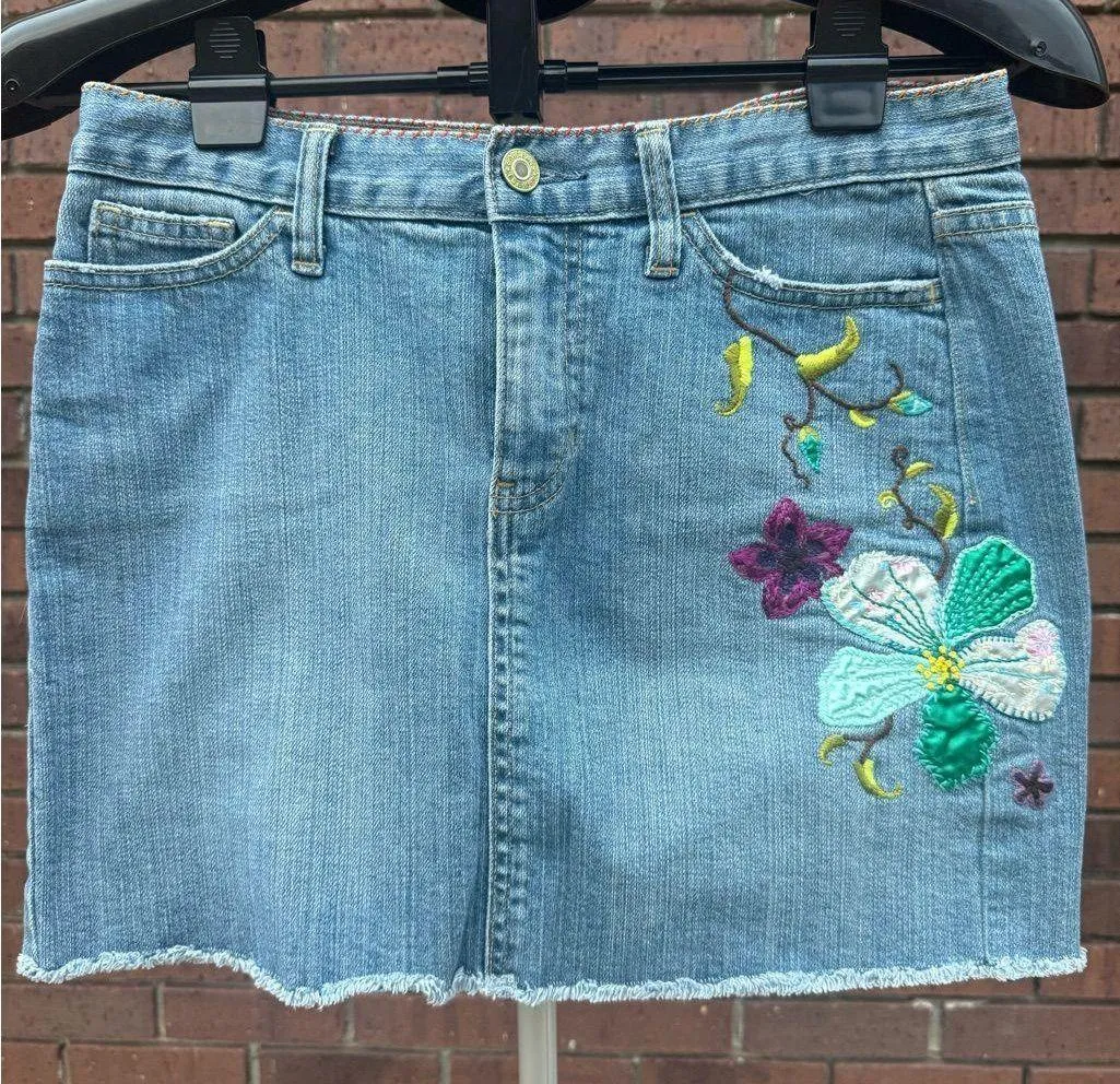 Vintage 2004 (Y2K) Gap Denim, Mini Skirt Size 4 Embroidery (Flowers and Butterflies) Vibrant colors... Show more