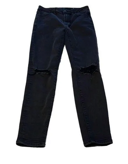 EUC, slightly faded black colored stretchy jeans with holes in the knees. No stains or other holes.... Show more