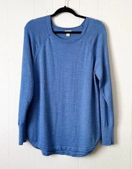 L.L. Bean women's pullover blue sweater. Round neck. Long raglan sleeves. Warm and cozy. In good use... Show more