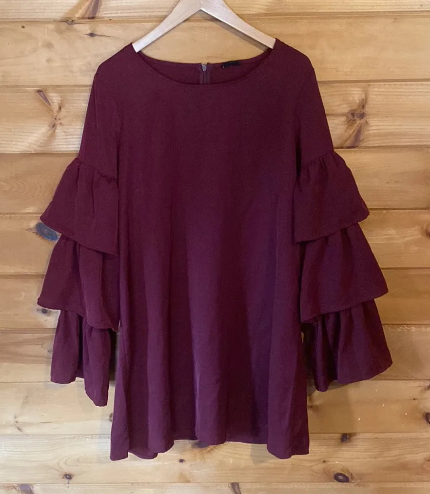 Lucca maroon tier sleeve long sleeve dress Size L - $28 - From Morgan