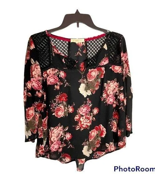 Rewind Women's Black/Pink Floral Blouse Size Medium - $10 - From Lyndsey