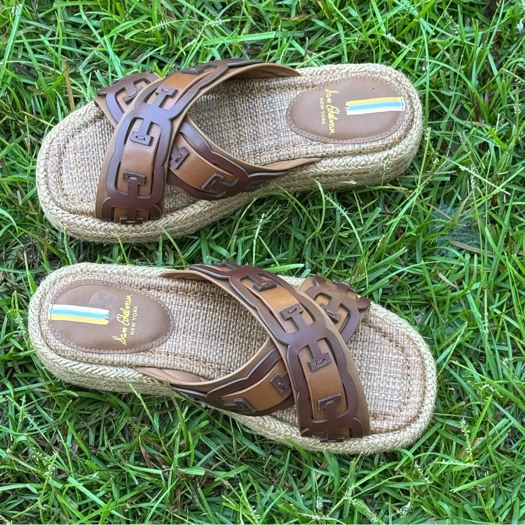 Like new condition Step into comfort with these stylish brown leather sandals. Perfect for any casu... Show more