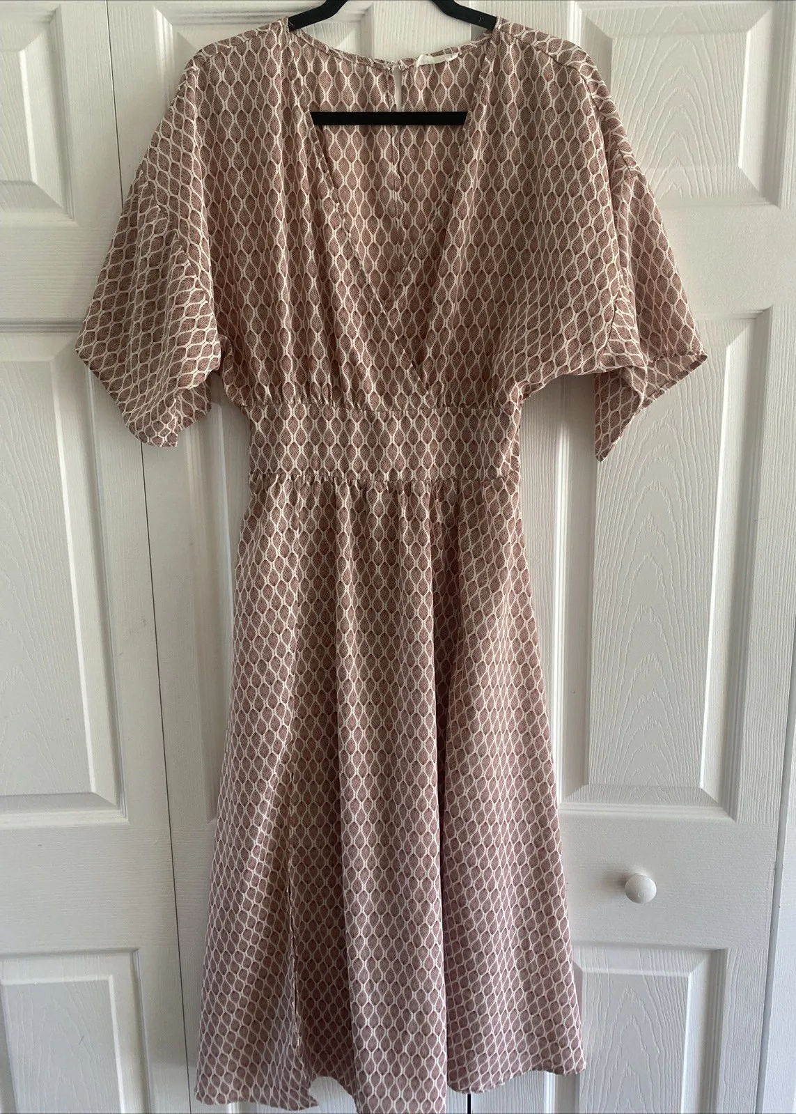 AndTheWhy Deep V Neck Leaf Pattern Maxi Dress‎ Medium Smocked Waist Retro Trad - $24 - From Arielle