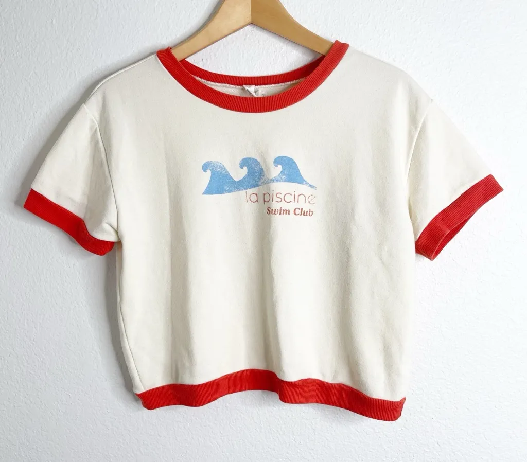 Daily Practice Anthropologie Crew Neck Short Sleeve Tee La Piscine Swim Club Size Small Approximate... Show more