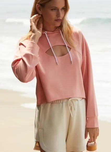 Daily Practice Anthropologie NWT Sport Cutout Crop Hoodie Rose Pink Size Medium‎ - $41 New With Tags - From STL