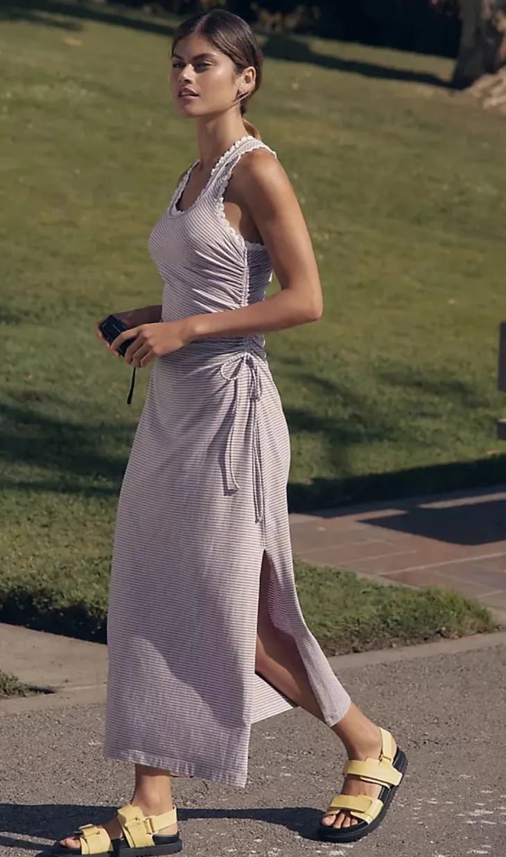 Stylish lavender maxi dress with side slit and ruched side • Cotton, elastane • Pullover styling, s... Show more