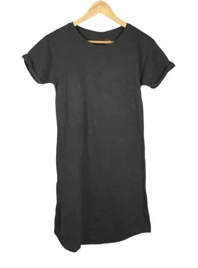 All orders ship next business day! Daily Ritual Jersey Knit T-Shirt Dress, short sleeve, cuffed, heather gray, super soft, 100% cotton, women's size small. Condition: clean, excellent condition Color: gray Size: Small, length- 37", pit to pit- 18", stretch (approximate) Material: cotton women, women's, stretchy, stretch, soft, casual, tee, t-shirt, jersey, cotton, work, everyday Smoke free and pet free home!