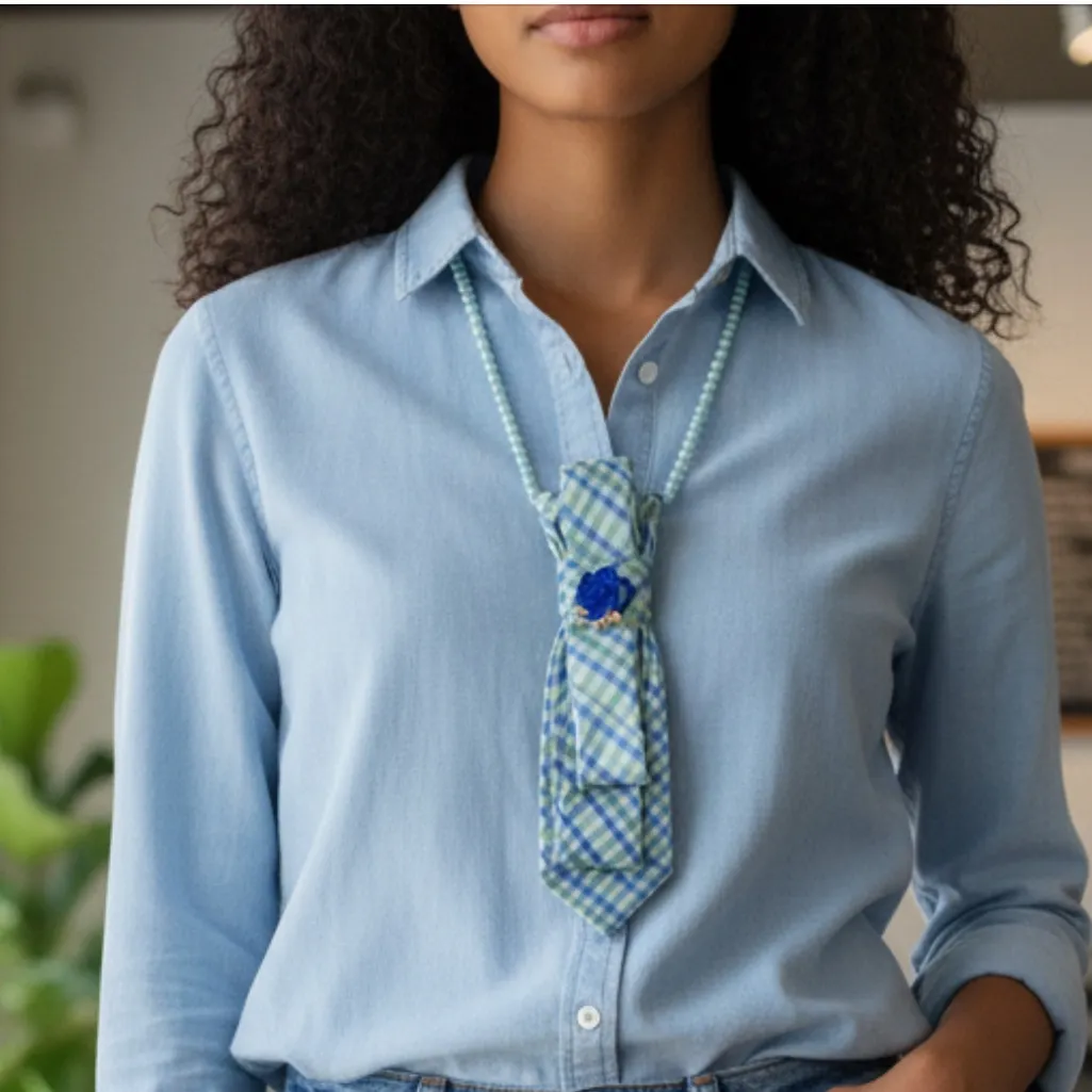 “Dainty Dapper”Blue and Green striped necktie Necklace with brooch Blue - $27 - From linda